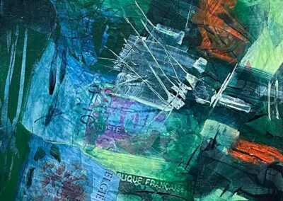Beth created paintings illustrating the division of political thinking between the right and left and how they both wanted to take care of their families. The division, at the time Beth created the paintings, was primarily around policies.